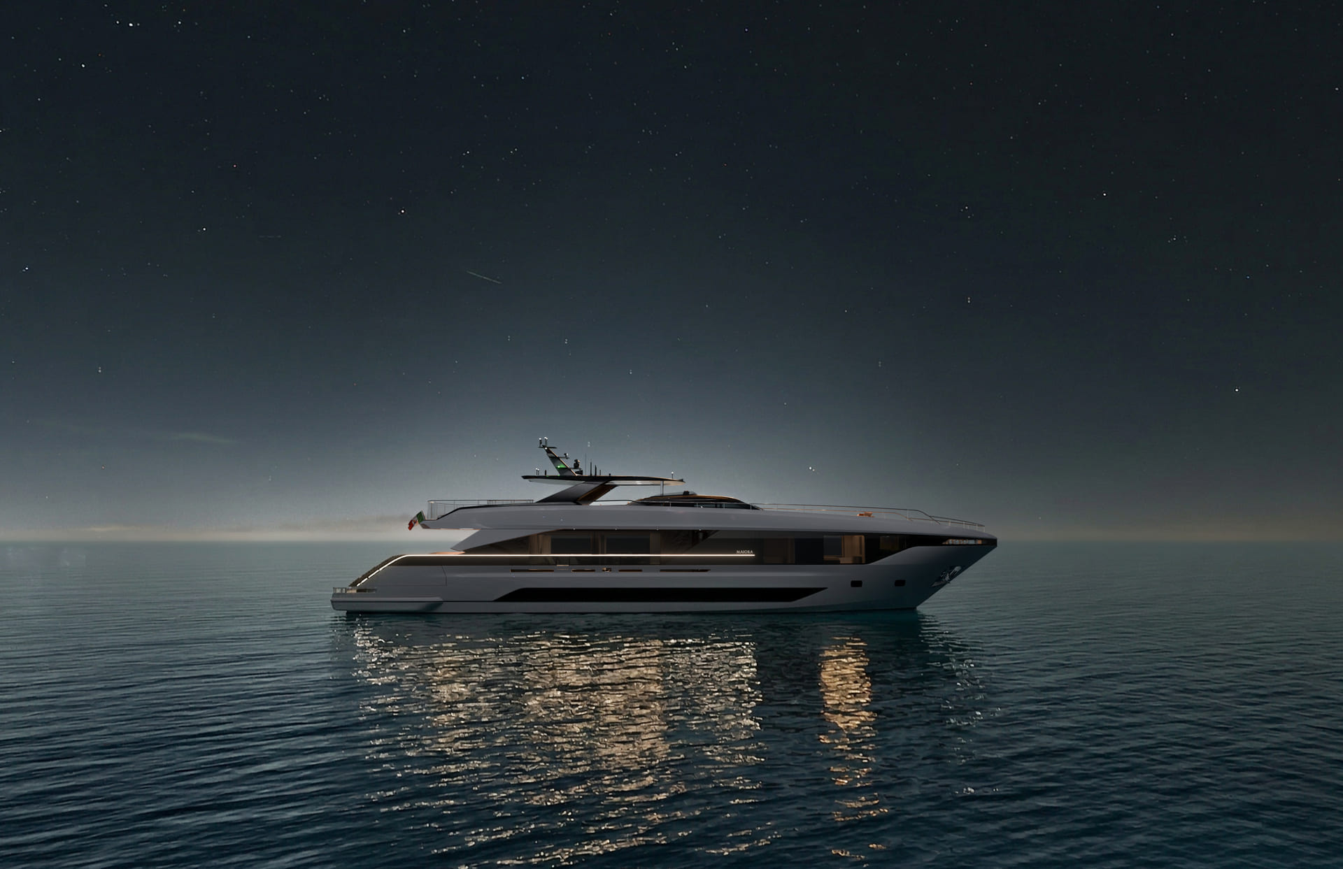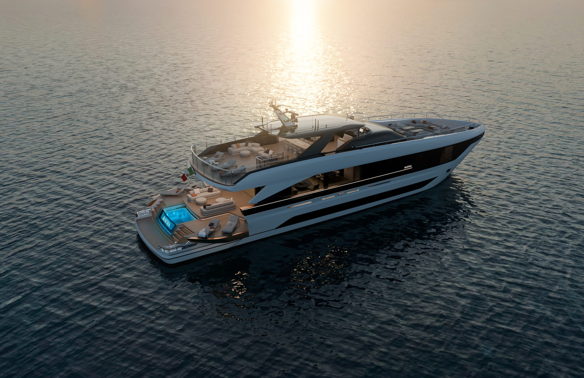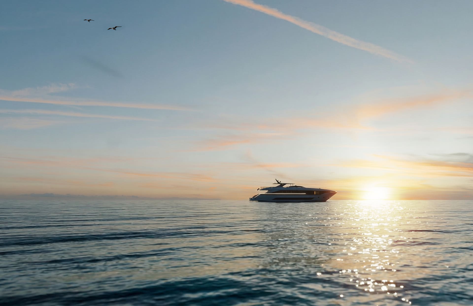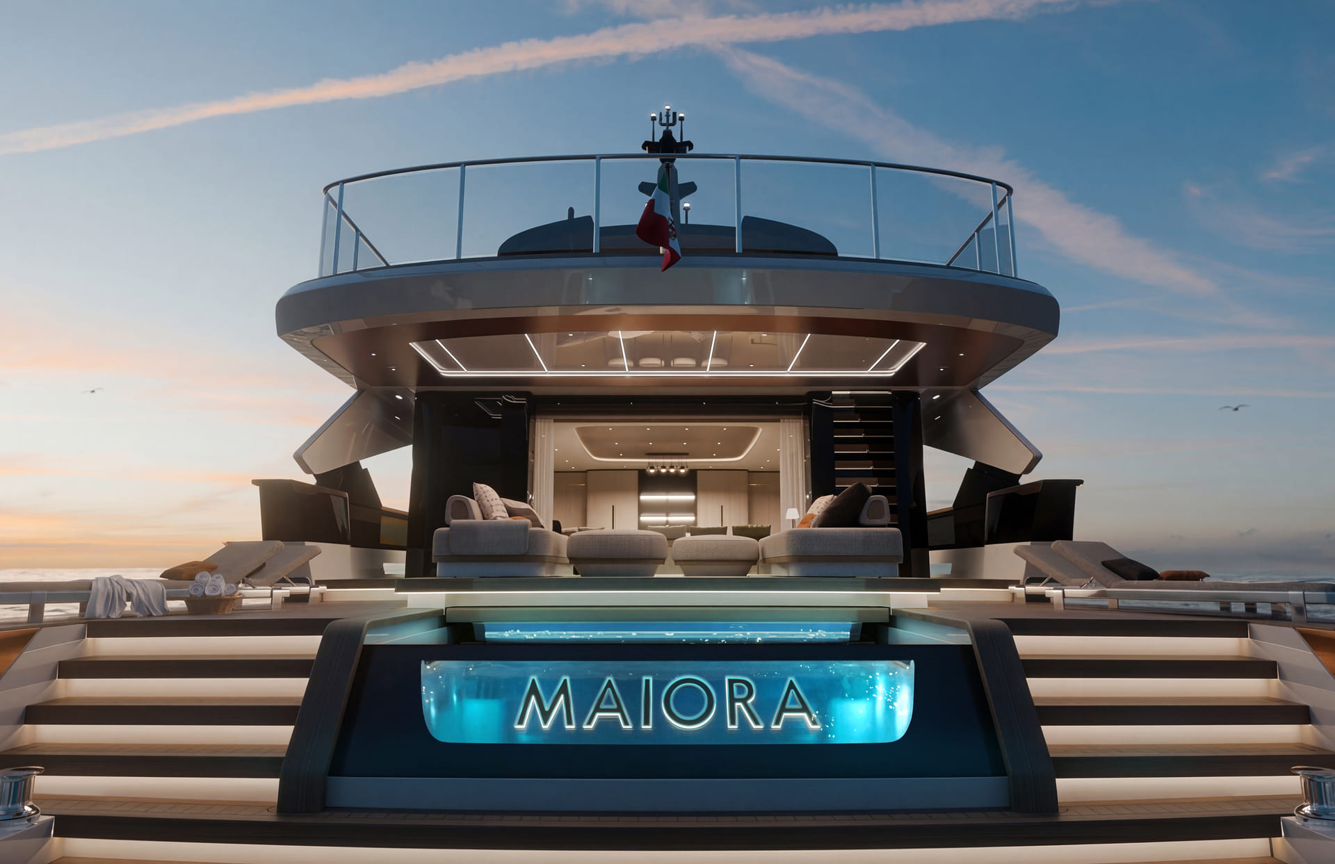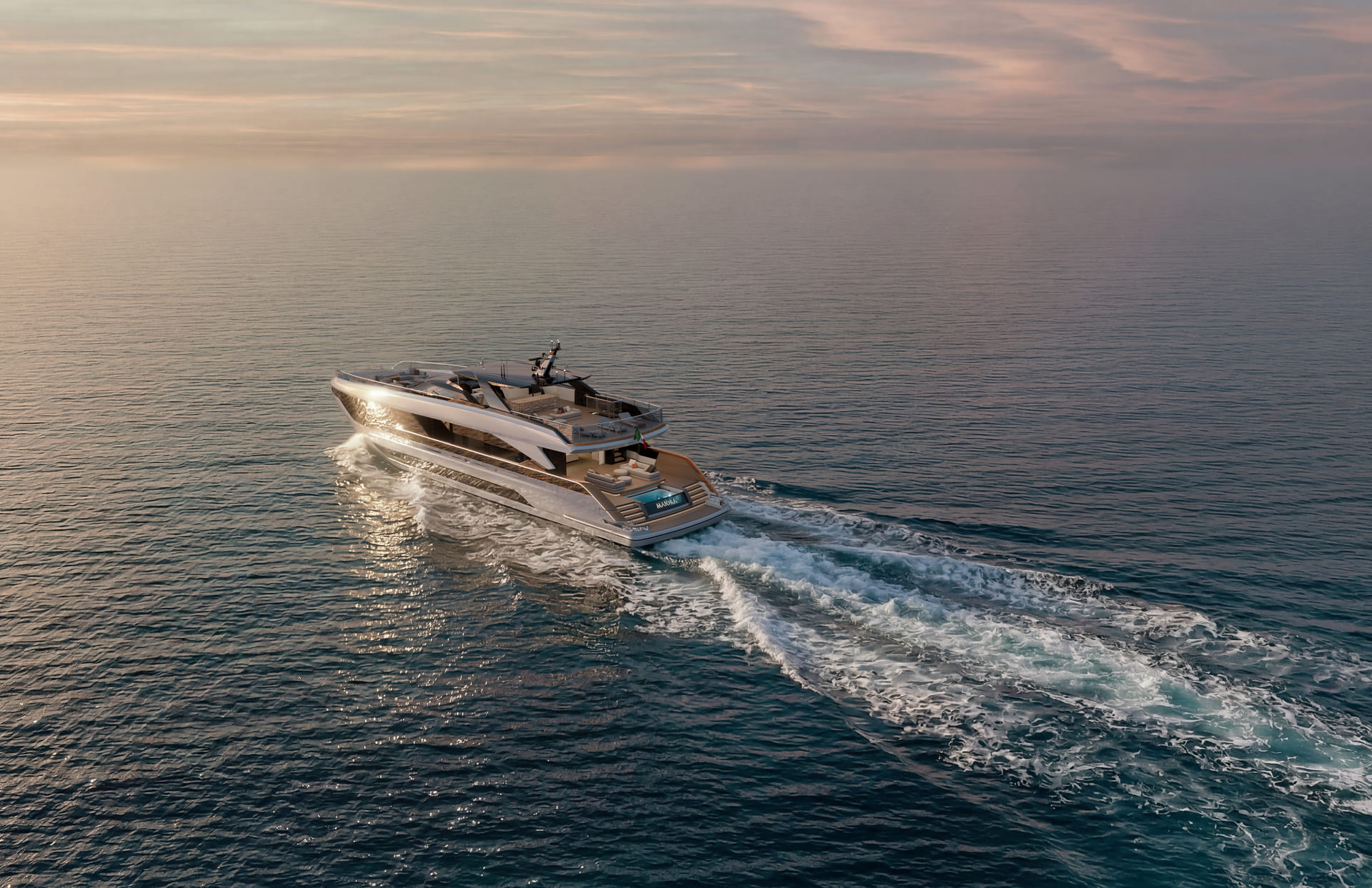 At the stern, the folding side wings open gracefully, bestowing the space with unparalleled versatility. An expansive, seamless cockpit unfolds, all on a single harmonious level. This design creates a perfect sense of continuity, as if the boundary between life on board and the sea dissolves, offering an immersive and intimate experience — a deep embrace with the waves and the endless breath of the water.